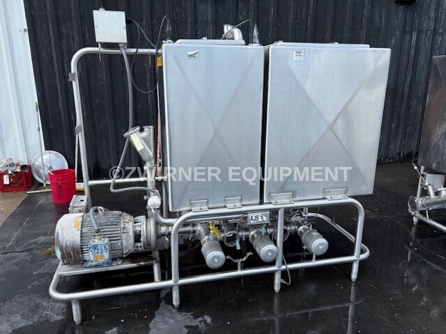 2 TANK CIP SKID MOUNTED SYSTEM WITH A 150 & 100 GALLON SINGLE SHELL TANK WITH LIDS